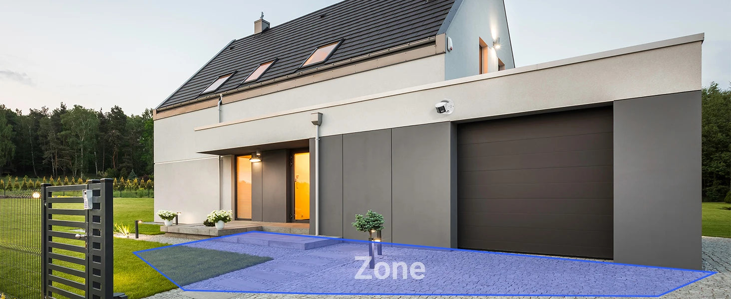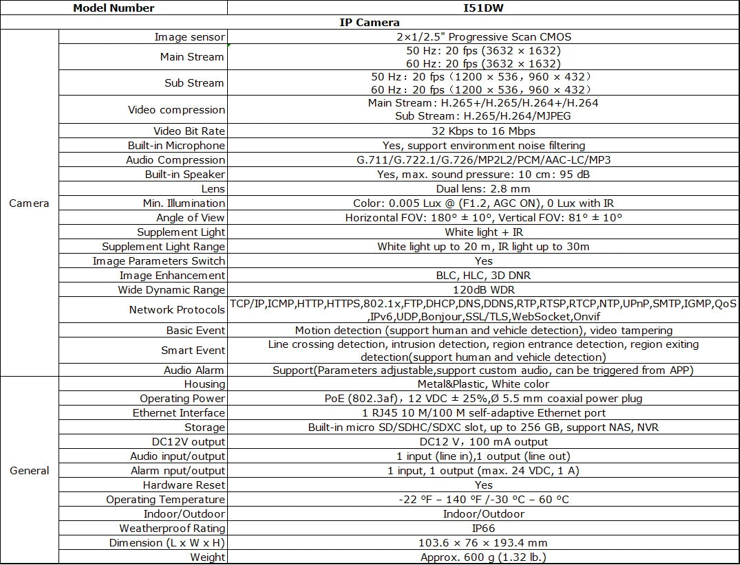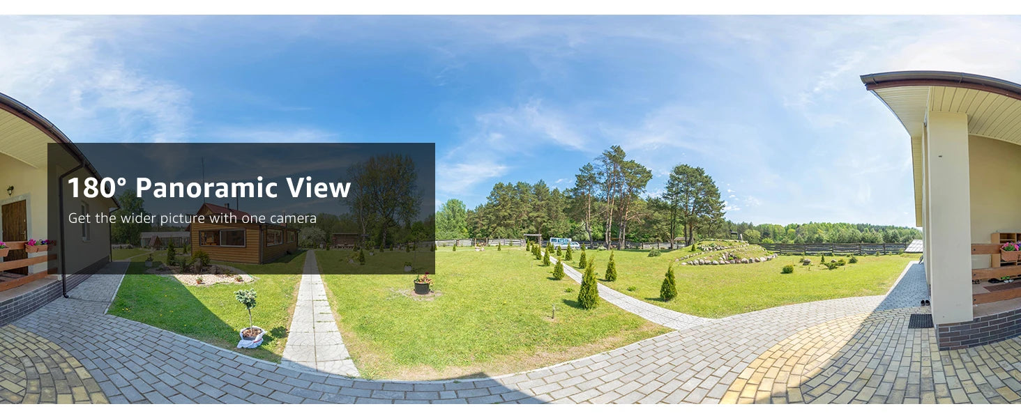 Dual-lens splicing with an ultra-wide viewing angle of 180° and a screen ratio of 20:9 provides ultra-large field of view monitoring with no blind spots. Advanced distortion correction technology pixel-level matching reduces blind spots. Image fusion technology maintains a high degree of consistency in the brightness and color matching of images for a perfect display. Spliced images.Human Person/Animal/Vehicle Detection & Accurate Alerts