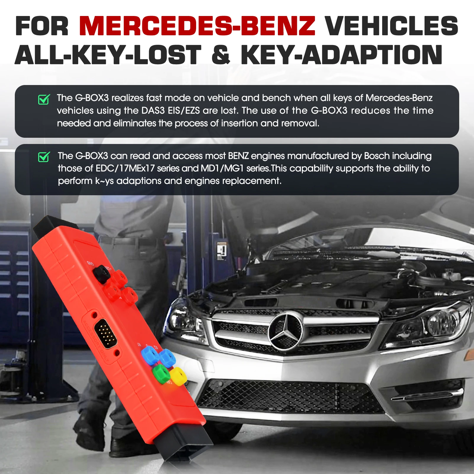 ● Supports on-vehicle and on-bench FastMode in an All Keys Lost scenario for Mercedes-Benz vehicles using the DAS3 EIS/EZS.