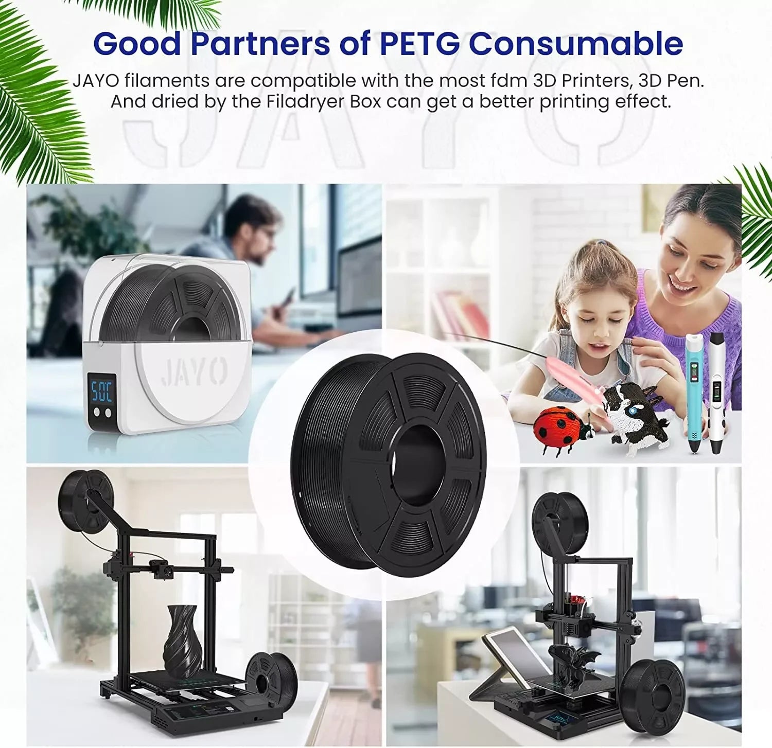 JAYO 3D PETG/PLA/PLA+/PLA matte Filament 1.75mm PETG Filament 5 Rolls For Bambu FDM 3D Printer Neatly Wound 3D Printing Material