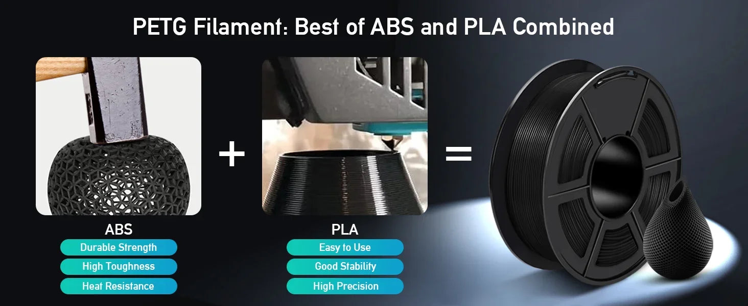 【Enhanced Toughness】Known for its toughness, PETG outperforms many other filaments in durability, making it ideal for creating sturdy and resilient items that can withstand stress and use.