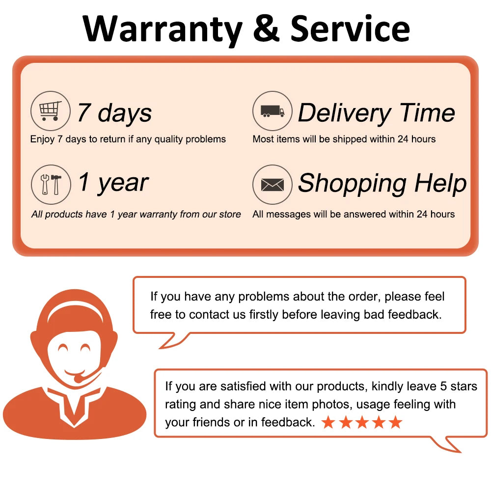*If any questions, you may contact our customer service in 24 hours before negative feedback. We'll try our best to help you.